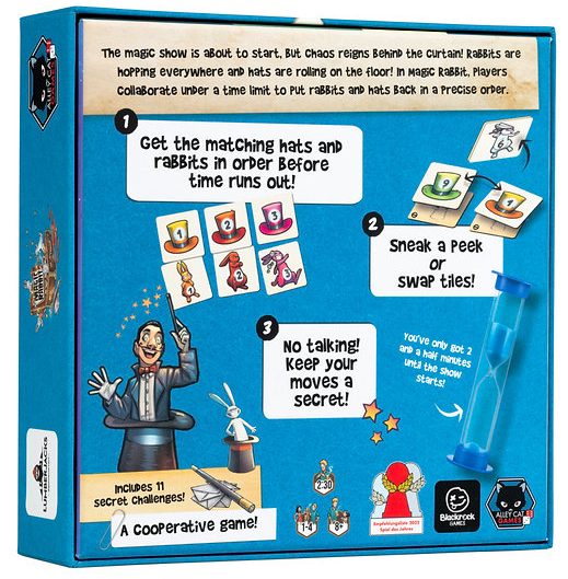 In Magic Rabbit, players will cooperate in a limited time to gather in line rabbits and hats together in an ascending order.