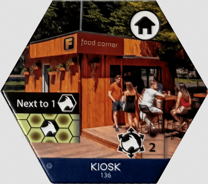 The Kiosk promo tile for Sanctuary must be placed next to one petting zoo animal already in your park.  For every petting zoo animal next to the tile, you will gain 2 points at the end of the game.