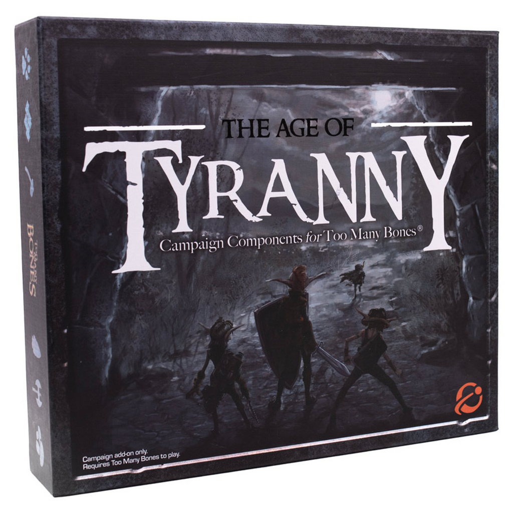 Connect multiple sessions of Too Many Bones with the Age of Tyranny! Age of Tyranny introduces brand new campaign mechanics to your existing Too Many Bones game. Using the Campaign Snapshot Mat, you'll track your progress from game to game. Take out all the Tyrants over consecutive sessions to truly free Daelore from their grip! Defeating (or being defeated by) Tyrants will leave you with all new Scars and Boons to deal with.
