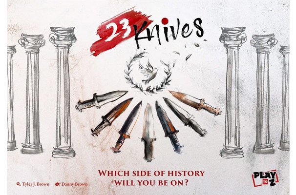 In a game of 23 Knives, you take on the role of a Roman citizen with one of three allegiances: a loyalist to Caesar, a liberator of Rome, or an opportunist biding their time. Throughout the game, you travel through Rome, manipulating other citizens and swaying them to your cause.