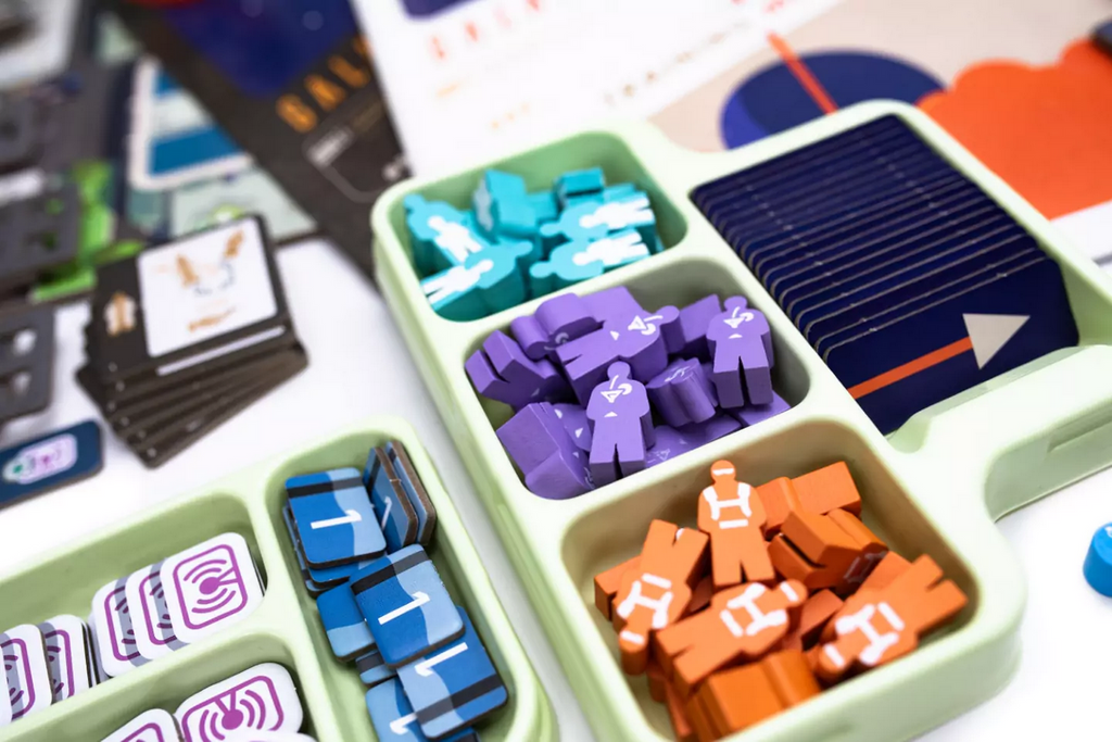 On your turn, you will either place a worker to take two actions in the ever-expanding network, launch a ship and send one of your workers to space as a pilot, or recall all your earthbound workers to collect funding bonuses. Actions include acquiring blueprints, constructing ships, attracting guests, and building developments–connections between locations that increase action selection throughout the game. You will also be affecting resource markets that ebb and flow with the actions of all the players.
