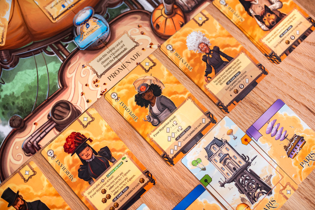 Drafting tycoons to your skyport will bring unique advantages in manipulating your docked airships, as well as additional scoring opportunities at the end of the game.