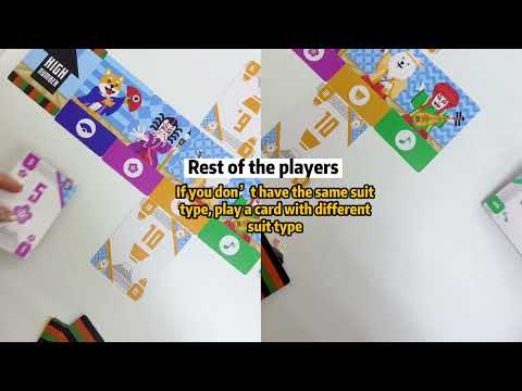 • The dealer leads to the first trick, and all players must follow suit, if possible — except that one non-lead player can play their joker instead of matching suit. When someone plays a joker, they place one of their player cards face down above one of the actor cards; their player card is a bet that they will win 1, 2, or 3 tricks, and the actor they played above is a bet that their final card will be that color. Additionally, they can either flip the High/Low card to affect which numbers are best or swap two adjacent actor cards to change the rank of the suits.
