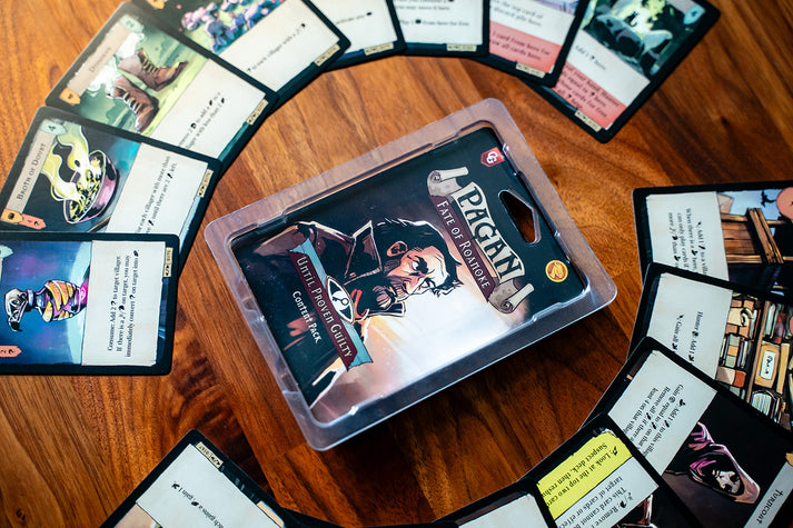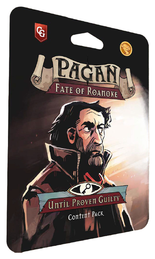 The Until Proven Guilty Content Pack is a 32 card expansion featuring all new cards that focus on the social fabric of the colony of Pagan: Fate of Roanoke.