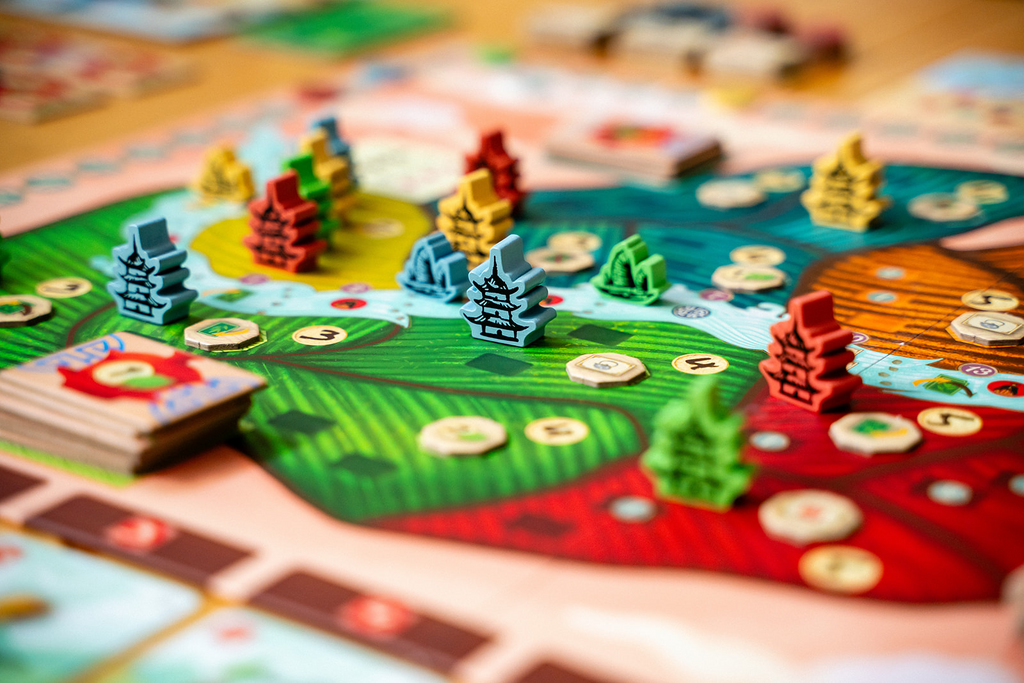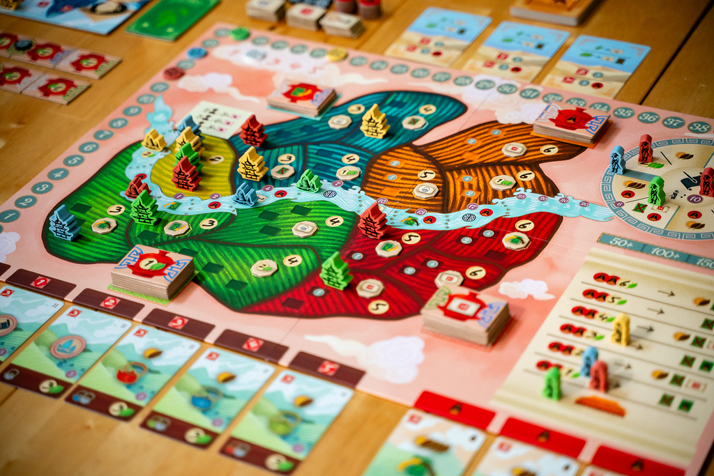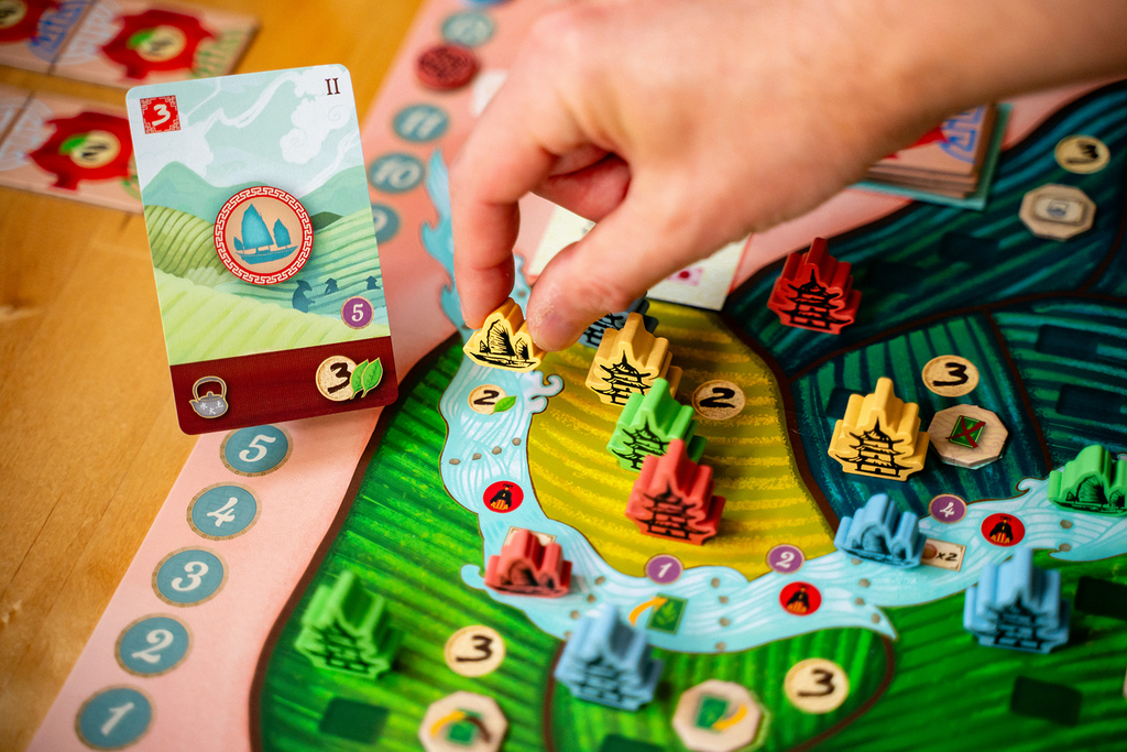 Harness the power of your deck of cards to orchestrate up to four main actions each game round. The strength of these cards is important for performing the chosen action; the higher the strength, the better the effects you will achieve. With your cards, you will build new tea gardens, acquire new cards, trade your tea with eager caravans, ferment your tea leaves, and harvest more tea. Couple your main actions with the power of secondary actions to navigate the river, produce tea cups, or practice tea studies at the university.