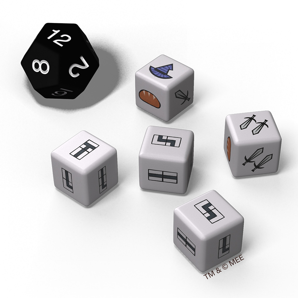 - DICE DRAFTING MECHANIC: Collect resources, overcome obstacles, and make tactical decisions using 5 six-sided dice and 1 twelve-sided die to guide Bilbo through his journey.