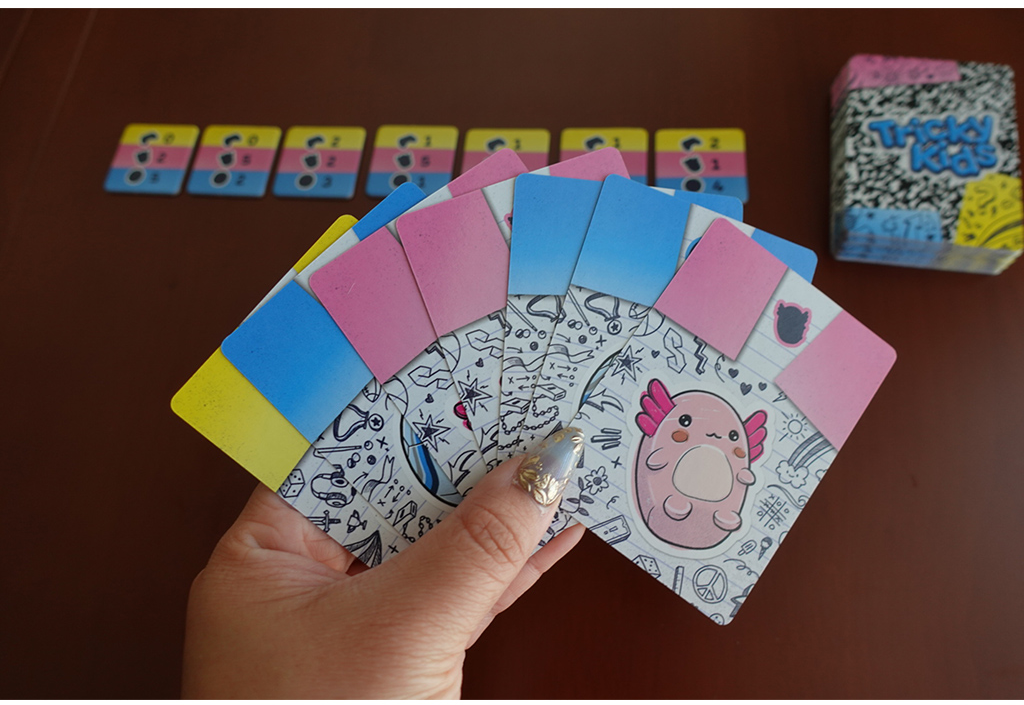 With optional “Tricky Rule” cards to mix things up each round (like passing your hand, playing with dual-suit cards, or unexpected win conditions), Tricky Kids keeps players guessing and giggling with every play.