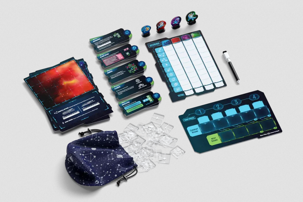 Constellations, asteroids, comets, planets, and black holes all score differently! With 10 modular scoring conditions in the box, you can mix and match for 32 different setups. Whoever finds their highest score in the stars wins.