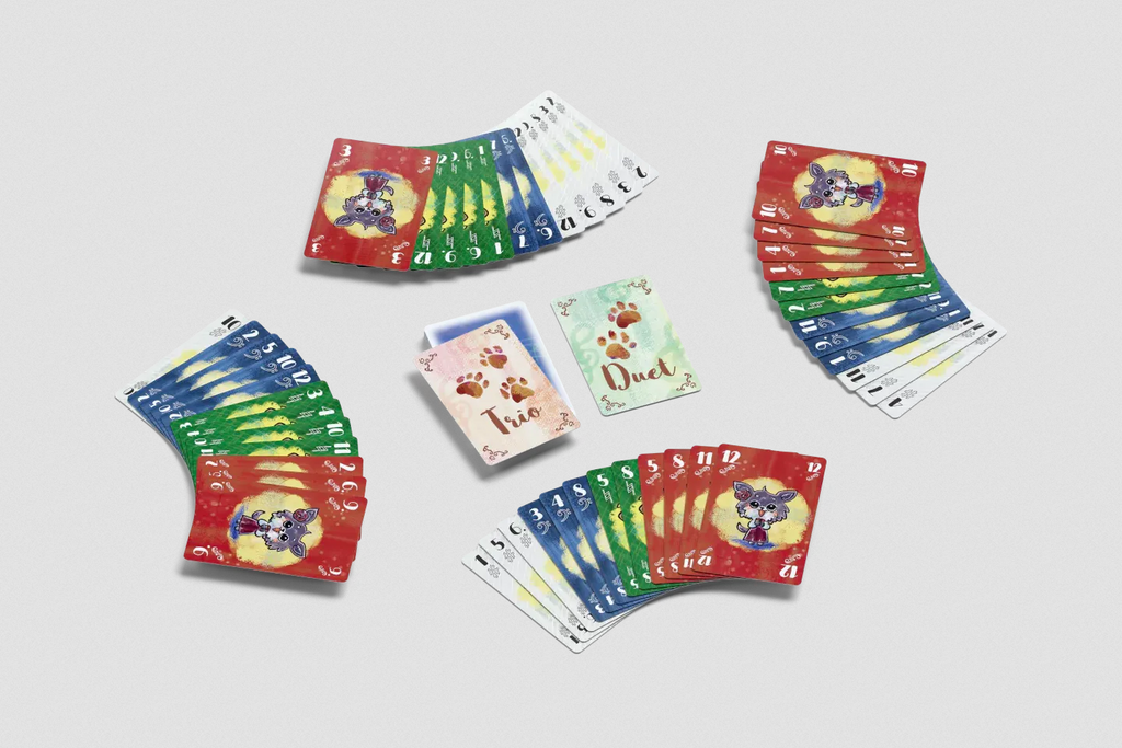In Vivo, each round starts by revealing a harmony type (Solo, Duet, Trio, Quartet). The harmony determines how many suits must be played in the trick—not being able to is considered playing “off-harmony,” making that player ineligible for points.