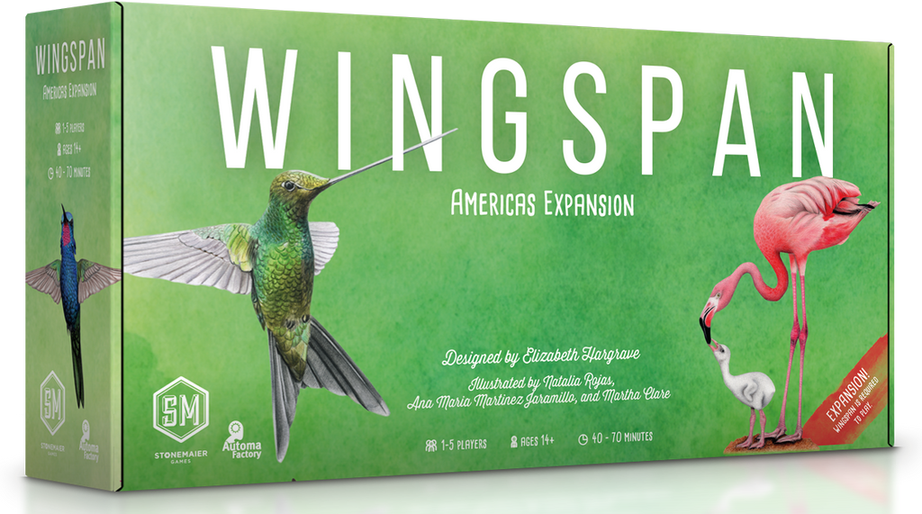 This fourth Wingspan expansion explores the birds of Mexico, Central America, South America, and the Caribbean. This incredibly biodiverse and abundant region is home to more than 3,000 bird species, including the birds with the smallest and largest wingspans in the world (the Bee Hummingbird and Snowy Albatross, respectively).