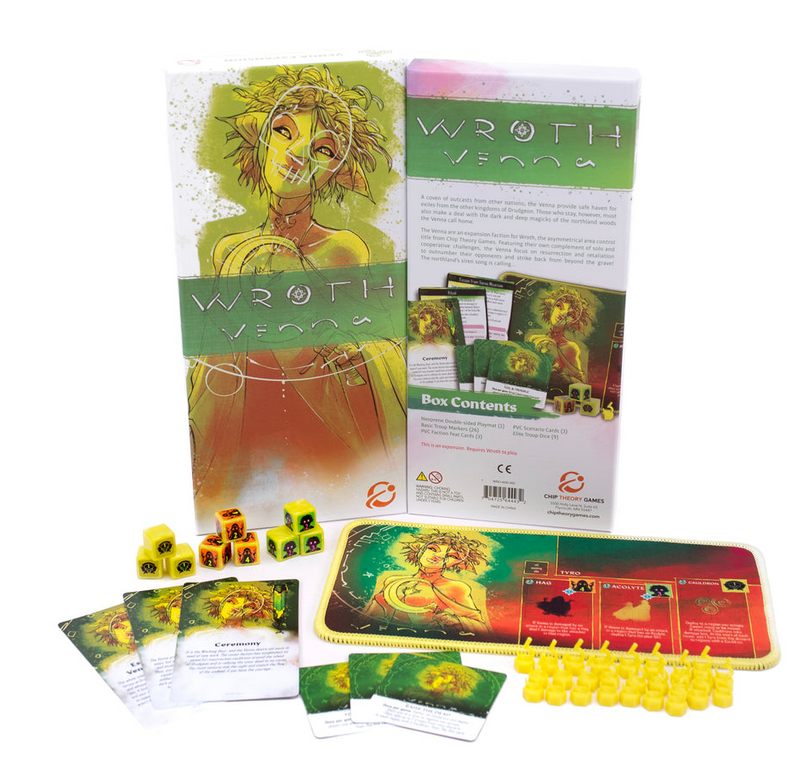 The Venna are an expansion faction for Wroth that focuses on wresurrection and wretaliation to outnumber their opponents. This content expansion features unique solo and cooperative challenges for players to enjoy.