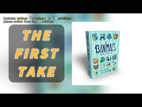 To set up 13 Animals, deal each player a hand of ten cards, then turn three cards face up to start three discard piles; split the remaining deck into two piles. Cards in the deck show five types of mammals, three types of birds, and five types of legendary creatures, each with their color front and back: green, blue, and yellow.