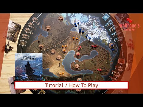 A War of Whispers is a competitive board game for 2 to 4 players. Five mighty empires are at war for the world, but you are no mighty ruler. Instead, you play a secret society that is betting on the results of this war while pulling strings to rig the results and ensure their bets pay off. A War of Whispers is a game of deep strategy, hidden agendas, and shifting loyalties.